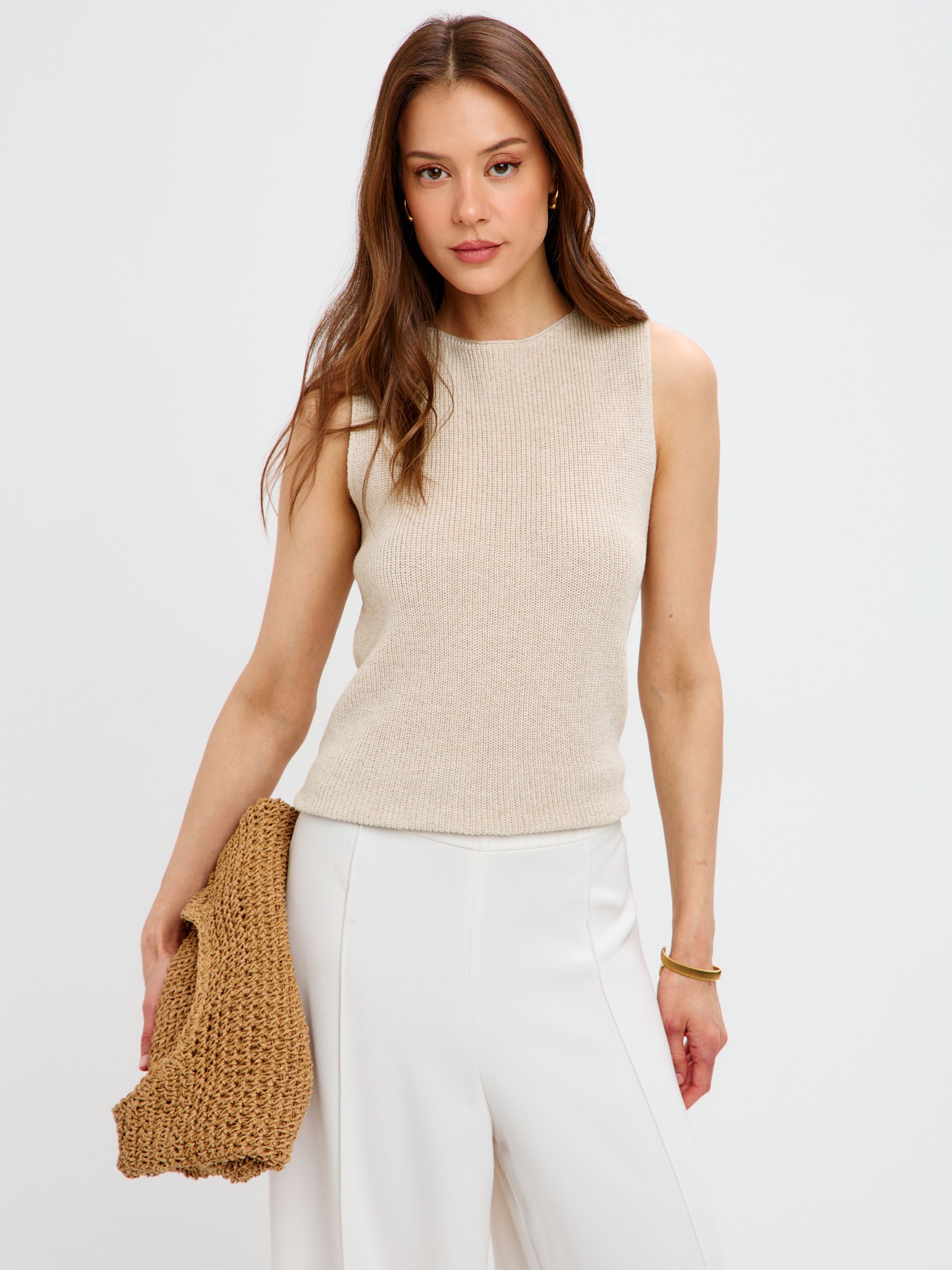 Джемпер-топ женский, связан переплетением полуфанг. На спинке модели бретели перекрещиваются. Длина 44 размера около 52 см, 48 размера-56 см. Рост модели 175 см.